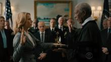 “Madam Secretary” is sworn in as President by the guy who narrated March of the Penguins, and basically everything else that has ever been narrated over the last 15 years (Morgan Freeman). Except when this swearing in takes place, there’s the notable absence of a certain phrase that has been a staple of the Oath of Office.