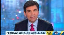 On ABC's Good Morning America on Wednesday, co-host George Stephanopoulos fretted over congressional hearings on the radicalization of American Muslims being "potentially explosive" and that "Critics are already calling this a witch hunt." The headline on screen throughout the segment read: "Hearings on Islamic Radicals: Witch Hunt or Reality Check?"