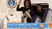All three network morning shows on Friday fawned over First Lady Michelle Obama's visit to China, but the broadcasts refused to mention that reporters had been banned from accompanying her on the trip. On Thursday, NBC's Today and CBS This Morning both insisted the overseas travel was "not political" while ignoring the press corps being left behind.