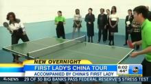 Friday's CBS Evening News and ABC's World News both glowingly harkened back to a prominent past example of bilateral exchange between the U.S. and China, as they reported on Michelle Obama's trip to the East Asian country. But they continued their blackout on covering the White House's ban of journalists accompanying the First Lady. During a news brief, CBS's Scott Pelley trumpeted how "education is the focus of her [Mrs. Obama's] week-long trip, but there was also time for a little bit of ping-pong diplomacy."