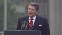 Changing that search to "Berlin Wall Reagan" reduces that number to one. That single story is a short, seven-paragraph item about sections of the wall which are on display in different parts of the world. Reagan's name gets mentioned as follows:
