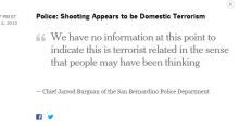 In a live posting on The New York Times website early Wednesday evening as part of the San Bernardino coverage, the paper ran a rather misleading headline claiming that the Police Chief told reporters the incident “appears to be domestic terrorism” despite the fact that the accompanying quote made no such conclusion.