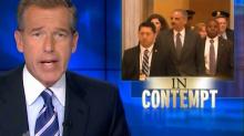Leading off Wednesday's NBC Nightly News, anchor Brian Williams could barely conceal his contempt for Attorney General Eric Holder being held in contempt by the House Government Oversight Committee: "Washington has blown up into a caustic partisan fight....And for those not following the complexities of all of it, it just looks like more of our broken politics and vicious fights now out in the open."