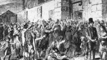 In his January 13 Washington Post item, Behrens reviewed two new books on the subject, The Famine Plot: England’s Role in Ireland’s Greatest Tragedy and The Graves are Walking: The Great Famine and the Saga of the Irish People, by Tim Pat Coogan and John Kelly respectively. Behrens favorably accepted Coogan's conclusion that “it was British reluctance to interfere with the supposed workings of the free-market economy that allowed famine to continue in Ireland at a time when the country was producing and exporting tons of food to England.”
