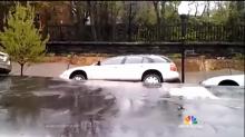 Curry began her report by showing video of cars falling off of a street in Baltimore, Maryland after a heavy rainstorm before bemoaning that this “is one example of extreme weather events that may be more common in the future.” [See video below.]