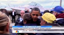 At the same time, Todd proclaimed that "Mitt Romney spent his Wednesday full-time on the trail in Florida, trying to balance campaigning and showing sensitivity for the storm victims." The headline on screen summed up the framing of the report: "President Tours Destruction & Gov. Romney Resumes Campaign."