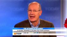 In the report that followed, environmental affairs correspondent Anne Thompson used Sandy to bolster the case: "...train stations in New Jersey inundated by torrents of water from Superstorm Sandy....scientists say this kind of destruction could become far more frequent because of the heat-trapping greenhouse gases warming the planet."