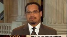 Earlier this year, Ellison responded to the Peter King hearings on the radicalization of American Muslims by saying that conservatives believe in liberty, but are against the “and justice for all.” In an appearance on MSNBC two weeks ago, he advised Herman Cain to “review that Pledge of Allegiance”, particularly the part proclaiming “liberty and justice for all.” And more recently, Ellison gave an interview to C-SPAN, in which he ran off a list of supposed differences between himself and Michele Bachmann. That list included a declaration that he, and apparently only he, “believe(s) in liberty and justice for all.”