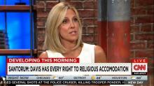On Monday's New Day, CNN's Alisyn Camerota hounded Republican presidential candidate Rick Santorum, after he suggested that Kim Davis should "follow her conscience" in refusing to sign marriage licenses for same-sex couples. Camerota underlined how the Supreme Court "decided...that not allowing gay marriage is discrimination," and asserted that "there are lots of laws that you yourself don't agree with, but you follow the law. That's what we do as Americans."