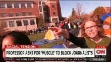 On Tuesday's The Lead, CNN's Jake Tapper zeroed in on University of Missouri Professor Melissa Click's attack on a student journalist, after he tried to cover anti-racism protests on campus. Tapper bluntly stated, "I have to say that I found this video shocking — not just this mob of students trying to intimidate this student journalist — but they had faculty help!" The anchor later asked Professor Tom Warhover, who also teaches at Mizzou, "Do you think she should be stripped of her courtesy opportunities?" Warhover replied, "I think that's probably a reasonable response."