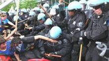The NATO summit meeting in Chicago this weekend was the target of a diverse collage of left-wing groups as people with the Occupy movement streamed into Chicago for protests that culminated in violent clashes with cops and 45 arrests on Sunday. Before the summit the Times reported the protest would be a sign of how strong Occupy remained. Yet once the violence and terrorism charges began flying in Chicago, the Occupy movement all but disappeared from the paper's coverage.