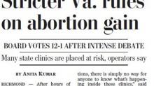 In a 23-paragraph Metro section front-pager entitled "Stricter Va. rules on abortion gain,"* Post staffer Anita Kumar --see our archive on her bias here -- noted in her lead paragraph that "the Virginia Board of Health overwhelmingly approved far-reaching regulations for abortion clinics" yesterday that "some operators say could shut down many of the state's 22 facilities" when they go into effect at the end of the year.