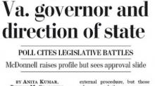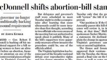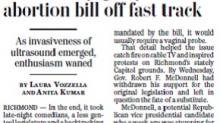 In a 37-paragraph front-page article today, Washington Post correspondents Laura Vozzella and Anita Kumar detailed how, as the "invasiveness" of an ultrasound requirement in an abortion regulation bill "emerged" that "enthusiasm waned."