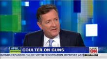 Piers Morgan sparred with Ann Coulter on his Wednesday CNN show over Hollywood producer Harvey Weinstein's vow to target the NRA in an upcoming movie and over the lack of new gun control regulations in the wake of the Sandy Hook shooting in December 2012. Morgan did his best to defend Weinstein, after Coulter blasted him for his "utter hypocrisy" in only recently condemning the impact of violent movies after making a fortune from them.