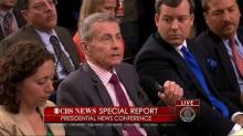 During a Tuesday press conference at the White House, CBS's Bill Plante channeled his colleague Bob Schieffer's 2009 "open sore" pronouncement about Guantanamo Bay as he asked President Obama about an ongoing hunger strike among many of the detainees there. Plante hinted at sympathy for the prisoners as he wondered, "Is it any surprise, really, that they would prefer death rather than – have no end in sight to their confinement?"