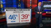 At the conclusion of a story on Wednesday’s CBS Evening News on the drop in gas prices and how Americans feel about the economy, CBS News senior business correspondent Anthony Mason felt that it was important to inform viewers that President Obama’s approval rating has improved six points from October in the latest CBS News poll.