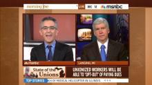Contributor Richard Wolffe led off the disrespectful display when Snyder defended the new law: "I don't believe this is actually anti-union. If you look at it, I believe this is pro-worker." Wolffe started laughing and rudely interrupted: "Hang on a second. Are you really – are you serious? Are you serious? This is not anti-union? This actually, at its core, undermines the ability for unions to organize. So you can make many arguments you like, but saying it's not anti-union..."