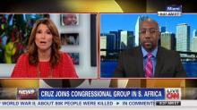 Even though Cruz appeared at Mandela's memorial service on Tuesday, CNN focused on controversial comments by his Facebook fans over his praise of the late Mandela. And during the 9 a.m. ET hour of Newsroom, anchor Carol Costello dug up a critic's broadside of the Senator: "'when you lie down with dogs, you get up with fleas.' Although that's probably a vile slur on dogs." Costello's guest, Rev. Raphael Warnock, then admonished Cruz for his "fringe" fanbase: