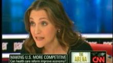 Appearing as a guest on Monday’s Parker-Spitzer on CNN, Chrystia Freeland of Reuters claimed that the European economy is at an advantage compared to the U.S. because of America’s lack of universal health care. But, when fellow guest Will Cain of the National Review pointed out that America’s economy outperforms Europe, Freeland was only able to name one nation in Europe - Germany - whose economy is performing impressively. Freeland: "I also think it’s a little bit of a mistake to be talking about how bad European economies have been doing recently. ... if you look at the industrialized nations, Germany is racing ahead. German economic growth is on a tear, so is Canadian-