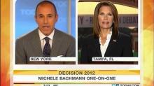 Bachmann had attempted to begin on the subject of President Obama's jobs plan, but Lauer quickly steered her toward Republican infighting: "You not only question the policy [of mandating the HPV vaccine], but you questioned the motivation behind it, suggesting rather strongly that this could have been an attempt to appease a big drug company, Merck, because they contributed to his campaign. So I want you to lay this out for me. Is that what you are asserting?"
