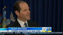 She continued, "It certainly brought the former New York governor crowds he could not have imagined before his prostitution scandal cost him his job in 2008." [See video below. MP3 audio here.]  What the reporter conveniently ignored is that Spitzer was mercilessly heckled on Thursday. A Manhattan man screamed at the Democrat, "Why were you late? Were you with a hooker?"