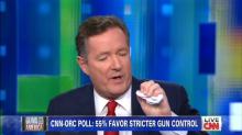 Despite Piers Morgan's consistent advocacy, CNN's own polls show support for certain gun laws down from a month ago. That didn't stop Morgan from targeting two female gun rights advocates on his Wednesday night show, asking absurd questions, constantly interrupting them, and throwing a juvenile hissy fit.