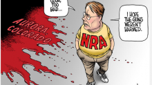 The Los Angeles Times has published an inane and irresponsible piece of political commentary about the recent mass shooting in Aurora, Colorado. This time it's cartoonist and columnist David Horsey, blaming the NRA for the bloodbath, both in writing and in a cartoon depicting a callous Wayne LaPierre quipping "I hope the guns weren't harmed."