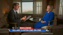 In her third interview in the past week, Hillary Clinton sat down Tuesday with ABC’s World News Tonight anchor David Muir and while Muir pressed her on the e-mail scandal, Muir concluded part one of the discussion with gooey questions about if she ponders why she’s running for president “in your most private of moments” and whether she hears “your mother’s voice in your ear.”