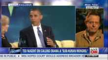 Despite the highly offensive nature of Nugent’s rant, CNN’s Erin Burnett awkwardly played a clip of President Obama using the same word as Nugent in a 2012 appearance on “The View” before the CNN host claimed that “the only use of the word mongrel that I could find in common talk, because you're talking about street talk, was actually the Aryan Nation membership form.” [See video below.]