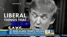 Good Morning America's George Stephanopoulos on Wednesday hammered Donald Trump over whether he was a real conservative. Citing attacks from Jeb Bush, the co-host demanded, "... You heard Jeb Bush yesterday. 'You're not a conservative. You're more Democrat than Republican.' This is all personal. Is he drawing blood?"