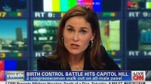Liberal women were in an uproar over the all-male panel at Thursday's congressional hearing on the HHS birth control mandate, and CNN made sure to tout their displeasure. Anchor Hala Gorani emphasized the "fireworks" over the hearing while ignoring the Republican explanation as to why a female pro-birth control witness was refused participation in the panel.