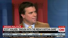 Jonathan Martin of the New York Times targeted Scott Walker on CNN's New Day on Monday over his "gotcha game" attack on the media." Martin contended that Governor Walker "doesn't want to answer these kinds of questions – which is problematic, but it also gives him an opportunity on the right." He added that "it's all kind of a depressing, cynical exercise, frankly, because...Walker doesn't want to play the game, and by not playing the game, he then gins up sympathy on the right against the media."