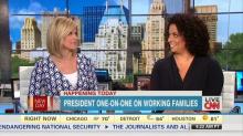 The expectant journalist admitted that she was "a little self-serving at the end," but her colleague reassured her: "No, no, no, no, no! It was really sweet." The President gave a pretty basic answer to Bolduan's question: [MP3 audio available here; video below the jump]