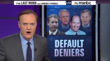 Taking off on the terms 'Holocaust deniers" and the more recently dubbed "global warming deniers," the words "Default Deniers" appeared on screen behind the MSNBC host as he began the show: