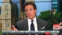 Liberal CNN anchor Chris Cuomo took a shot at Republicans on Tuesday's New Day, as he touted the most recent poll results from his network that found poor approval numbers for congressional Republicans. When regular guest Margaret Hoover asserted that "there is Republican brand damage," Cuomo cracked, "Brain damage? What did you say?"