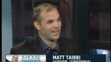 The two hosts devoted 12 straight and uninterrupted minutes during the first half of the 8 pm Eastern hour to their interview of Taibbi. Parker mentioned Taibbi's new book, "Griftopia: Bubble Machines, Vampire Squids and a Long Con that is Breaking America,"  in her introduction of the author and labeled it "a scathing and often hilarious account of the financial crisis...it's hard to make the financial crisis funny, but you did that successfully." She continue by quoting one of the writer's attacks on Sarah Palin: "I want to read you a description that you wrote of Sarah Palin. You called her a 'narcissistic money-grubbing hack.'"