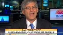Isikoff reported: "Cain's campaign committee has used $100,000, collected from donors, to pay Cain's own company for thousands of these booklets written and self-published by Cain. That means profits for Cain himself and could run afoul of campaign laws, say watchdog groups." A sound bite was played of Craig Holman from the left-wing group Public Citizen declaring: "This has every appearance that Herman Cain is running for president largely to sell books and enrich his own company."