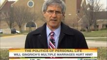 Later, fellow co-host Matt Lauer introduced a report on Gingrich by declaring: "He is perhaps the best known Republican in the field to date. But Gingrich also has a messy personal life that includes two divorces, three marriages, and a lengthy affair." Correspondent Michael Isikoff described how, "Everywhere he goes, Newt Gingrich hears the questions [about his personal life]....Gingrich, who once campaigned as a family values candidate, has been dogged for years by criticism of marital infidelity..."