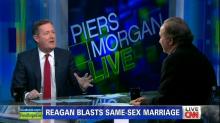 CNN's Piers Morgan put Michael Reagan through the wringer on Wednesday over a small portion of his op-ed on churches and same-sex marriage. Morgan barely discussed the overall point of the article, focusing instead on "very controversial comments" near the end of the op-ed.