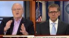 On Morning Joe today, the former Boston Globe columnist demanded to know of Obama press sec Jay Carney just when the president was going to stop "swinging at air" and start calling out Republicans by name. Video after the jump.