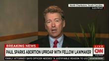 Newly-declared 2016 presidential candidate Rand Paul took a shot at the media during a Wednesday campaign appearance in Milford, New Hampshire. An unidentified reporter asked the Kentucky senator about a recent interview he did with the Associated Press that centered on the controversial issue of abortion. Paul replied, "Why don't we ask the DNC: Is it OK to kill a 7-pound baby in the uterus?"