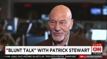 Veteran actor Patrick Stewart, who spoke with CNN’s Brian Stelter for Sunday's Reliable Sources to promote his new show Blunt Talk, described how he prepared for his role as a nightly cable news host by watching liberal anchors Jon Stewart and Rachel Maddow. After he spent time with both hosts, Stewart explained, he “learned very quickly how clever people are who work on those shows. How intellectually clever they are and how articulate.”