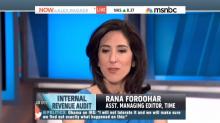 Take the Monday May 13 edition of Now w/ Alex Wagner when Time magazine assistant managing editor Rana Foroohar ridiculously asserted in light of the IRS/Tea Party scandal that, “What’s so sad about it is the president has been very rightfully proud of the lack of scandal in his administration so far.” [See video after jump. MP3 audio here.]
