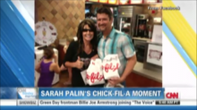 On Sunday, Pink's "Stupid Girls" was played before a CNN Sunday Morning piece about former Alaska governor Sarah Palin visiting a Chick-fil-A restaurant to show support for the embattled company (video follows with transcript and commentary):