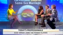 That fact was made blatantly obvious by the discussion that preceded Guthrie's admission. The panel featured openly gay CNBC host Suze Orman, who voiced her support of the President's move: "Yeah, part of me is like, 'What took you so long, President Obama?' This is something that should have been done, in my opinion anyway – obviously, I would think that – a long time ago."