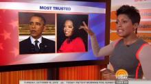 Touting the results of an NBC News/Esquire magazine survey on Tuesday's NBC Today of the supposed political center in America, fill-in co-host Tamron Hall proclaimed: "Interesting note, we asked the middle who they trust, guys, the most. And the answer is President Obama, Oprah Winfrey. The most trusted people according to those who fall in the middle." [Listen to the audio or watch the video after the jump]