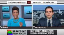 On Monday's MSNBC News Nation, host Tamron Hall teed up Michael O'Loughlin from The Advocate to promote his screed against the St. Patrick's Day parade organizers in New York and Boston for not allowing gay demonstrations at the respective events. Hall wondered: "What do you believe is the hold up at this point?...you see polls across the country where people, in their views of same-sex marriage of people who are gay and lesbian, greatly changed over the past ten years or so." [Listen to the audio or watch the video after the jump]