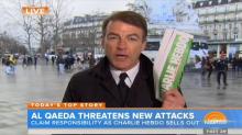 Reporting on the release of Charlie Hebdo's first issue since the January 7 terrorist attack, NBC's Today and ABC's Good Morning America on Wednesday refused to show the cover of the satirical magazine that depicted a cartoon image of Mohamed. Despite such censorship, both networks touted the publication as "a triumph for free speech" and "a kind of declaration of defiance against terror."