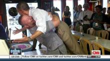 "It's the campaign stop everyone's talking about. The President of the United States got a lift, literally, from a super-enthusiastic supporter," Blitzer introduced the segment. "Congratulations. I love the bear hug," he told Van Duzer.
