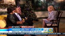 Good Morning America on Friday offered a fawning preview of Barbara Walters' exclusive interview with Barack and Michelle Obama. Walters gushed over the "touching," "charming" couple and asked the President softballs such as "What's your favorite app?" [See video below. MP3 audio here.]